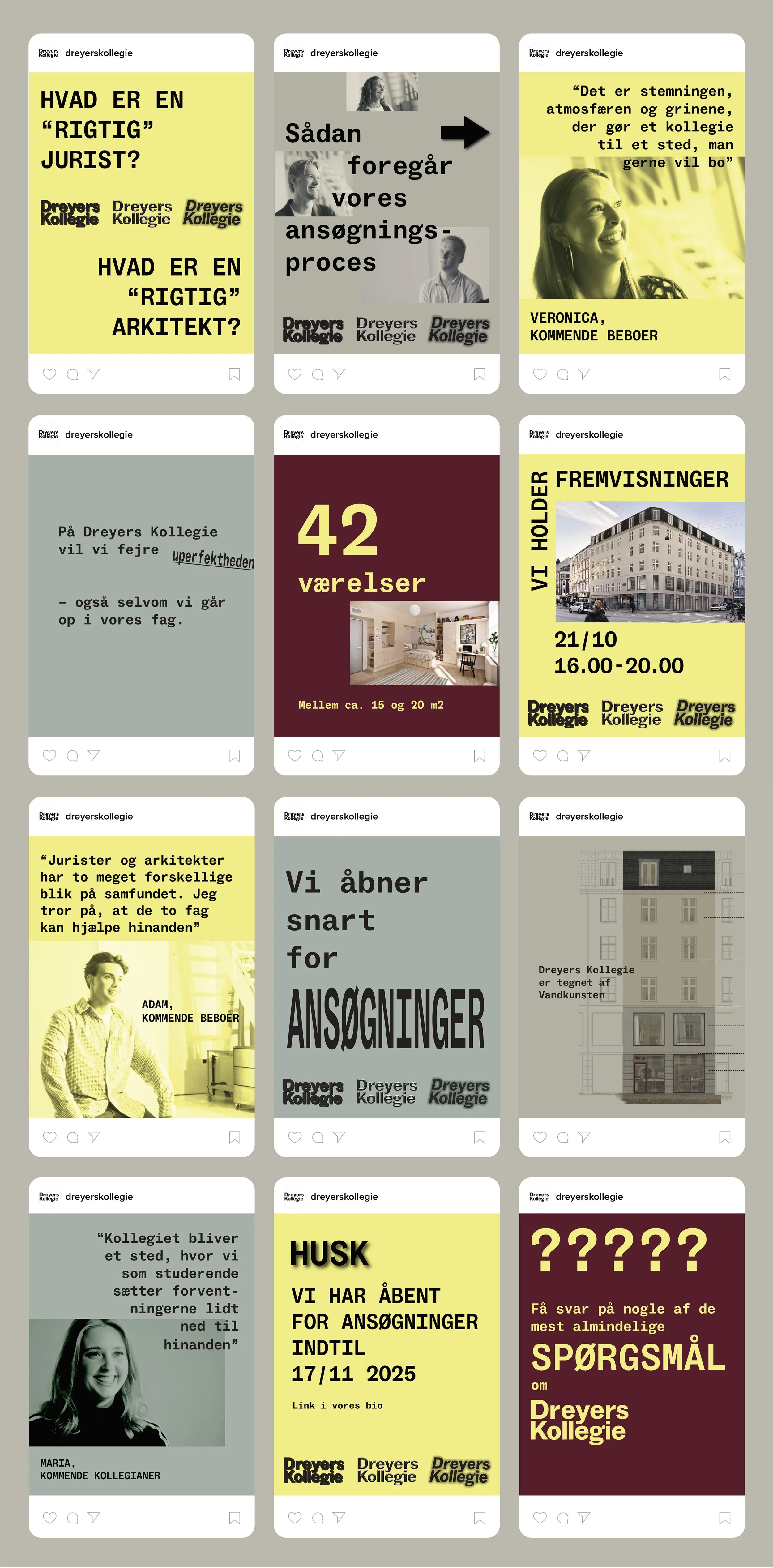 We created the communication concept and campaign for the newly renovated Dreyers Kollegie - a Copenhagen dormitory for law and architecture students, funded by Dreyers Fond.